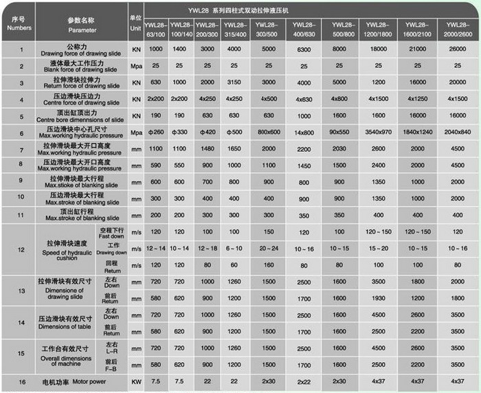 YWL28-系列四柱式雙動薄板拉伸液壓機